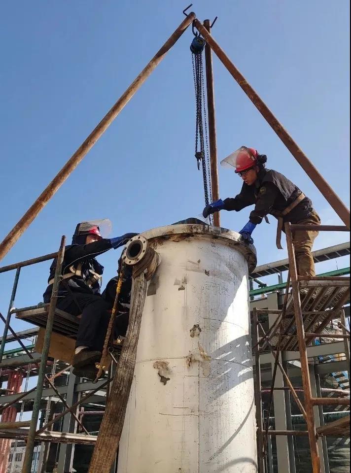 事無巨細,平凡小事中更顯勞動本色。在新罐區(qū)安裝的時候,為了盡早的讓罐區(qū)投入使用,檢修工段的師傅們每天加班加點,沒有一天能夠早早回家,領導們都在現場忙碌指導。記得有天工作中,天氣不好下起了雨,師傅們沒有因為天氣惡劣停下手中的活。有的披個塑料袋,有的啥也沒披,就在雨中繼續(xù)工作。雨水汗水打濕了他們的衣裳,然而大家卻苦中作樂,你看看我,我看看你互相打趣鼓勁,保質保量地按時完成了任務。