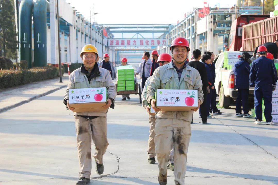 車上整齊碼放的一箱箱蘋果在各單位有序安排和齊心協(xié)力傳遞中卸下?,F(xiàn)場(chǎng)人員配合默契,一箱箱紅彤彤的蘋果陸續(xù)發(fā)放到員工手中,歡聲笑語(yǔ)的打趣聲、手捧肩扛的場(chǎng)景熱鬧非凡。