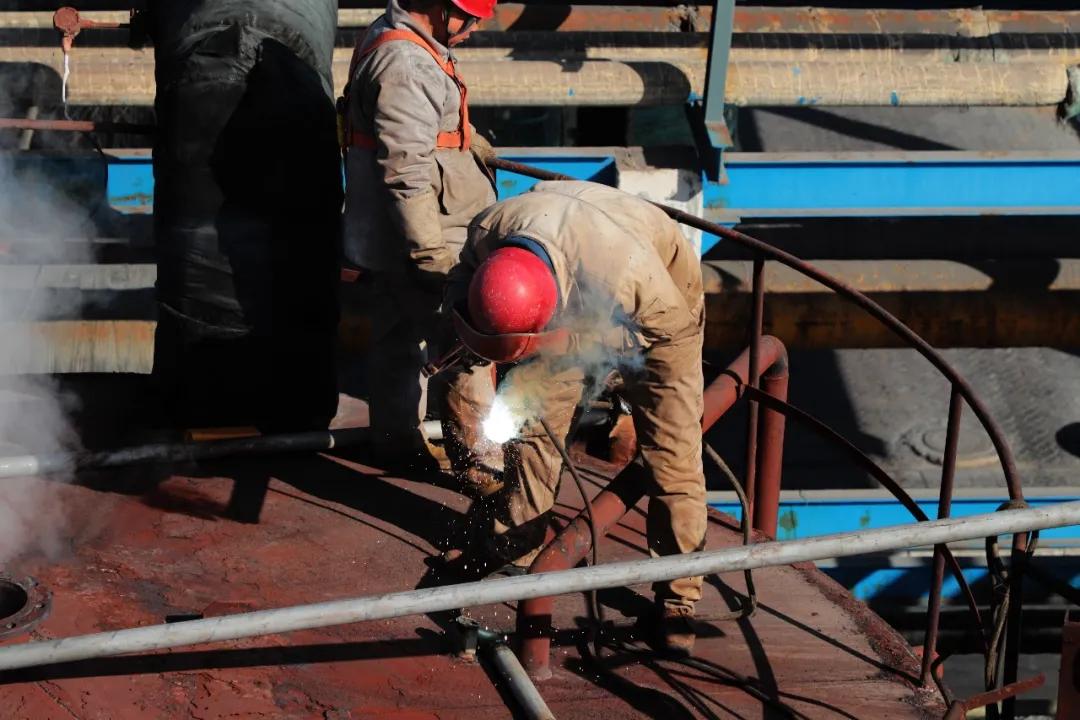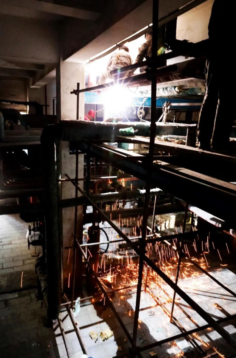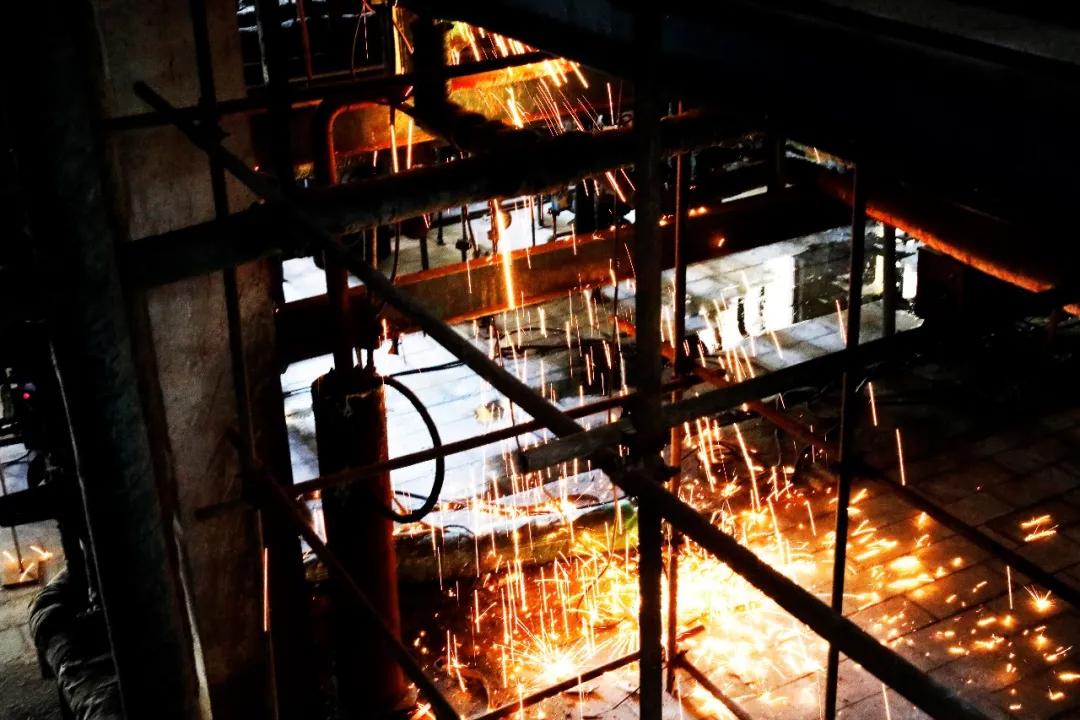(電解一樓焊5#電解槽堿液下液管火花四濺)
