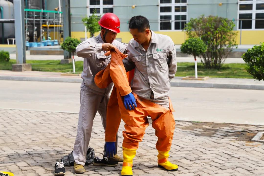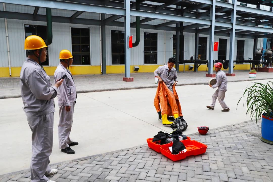 眾所周知,作為化工企業(yè),員工的安全處置和應(yīng)急能力顯得尤為重要。為加強生產(chǎn)一線干部員工應(yīng)急處置能力,免于在事故狀態(tài)下因不會使用或?qū)Ψ雷o用品使用不當,影響應(yīng)急處置或造成人員傷害。6月11日-12日,公司組委會開展了從“火災(zāi)報警使用——輕型防化服和空氣呼吸器佩戴——消防設(shè)施使用”的實操評比。