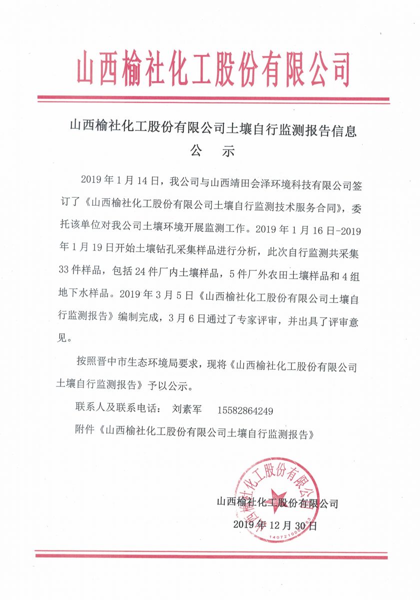 山西榆社化工股份有限公司土壤自行監(jiān)測報告