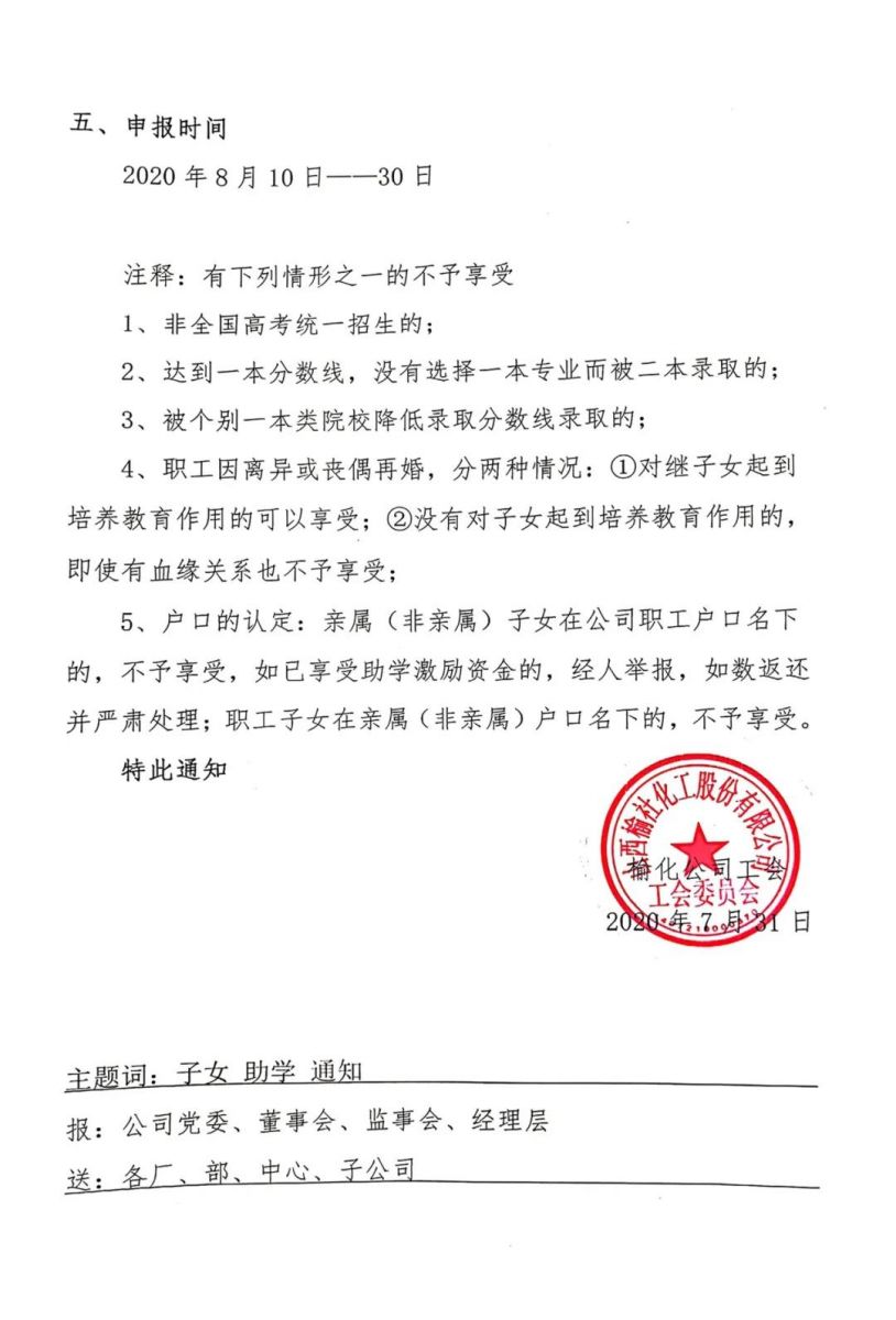 關(guān)于開展2020年度職工子女助學(xué)激勵(lì)的通知