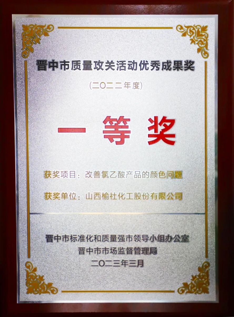 近日,晉中市2022年度質(zhì)量攻關(guān)活動(dòng)優(yōu)秀成果名單揭曉,公司“改善氯乙酸產(chǎn)品的顏色問題”質(zhì)量攻關(guān)項(xiàng)目榮獲晉中市質(zhì)量攻關(guān)優(yōu)秀成果獎(jiǎng)一等獎(jiǎng)優(yōu)異成績(jī),公司被授予“質(zhì)量攻關(guān)先進(jìn)企業(yè)”榮譽(yù)稱號(hào)。自2018年開展質(zhì)量攻關(guān)以來,公司申報(bào)項(xiàng)目已連續(xù)四年斬獲一等獎(jiǎng)的佳績(jī),項(xiàng)目的實(shí)施取得了顯著成效,有力地推動(dòng)了產(chǎn)品質(zhì)量的不斷提升。