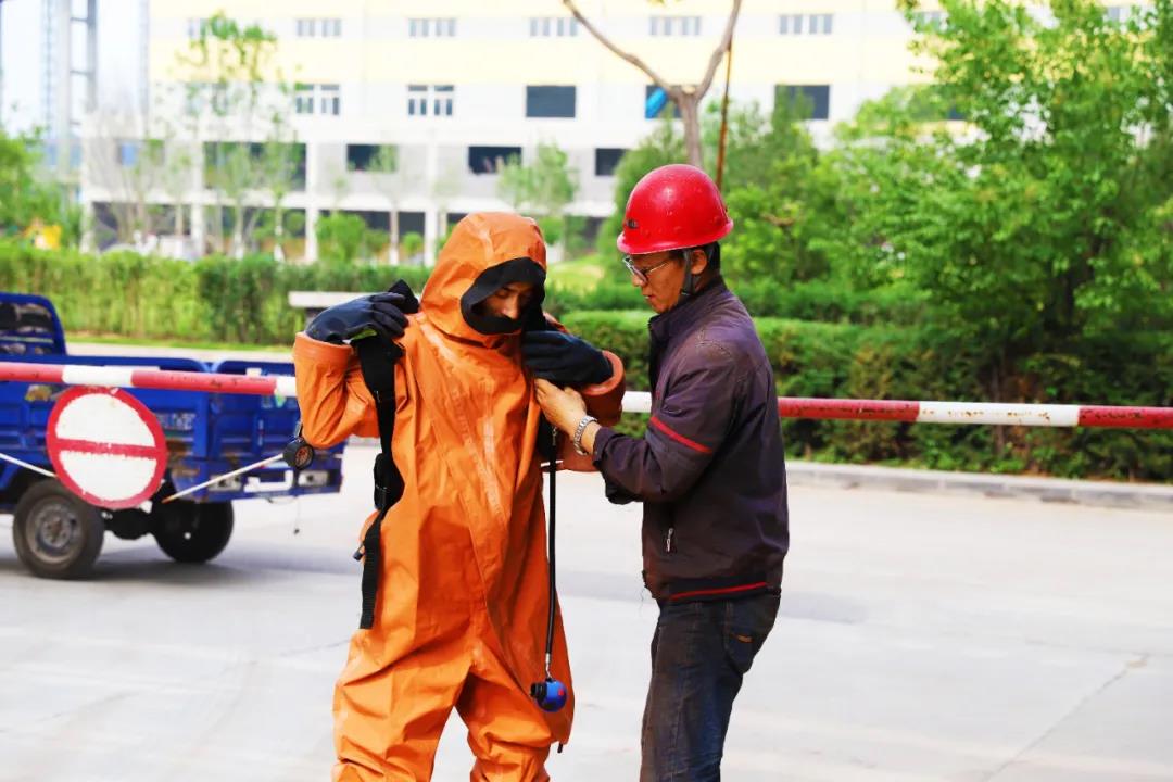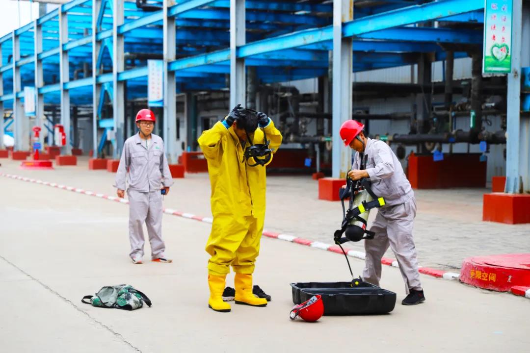 眾所周知,作為化工企業(yè),員工的安全處置和應(yīng)急能力顯得尤為重要。為加強生產(chǎn)一線干部員工應(yīng)急處置能力,免于在事故狀態(tài)下因不會使用或?qū)Ψ雷o用品使用不當,影響應(yīng)急處置或造成人員傷害。6月11日-12日,公司組委會開展了從“火災(zāi)報警使用——輕型防化服和空氣呼吸器佩戴——消防設(shè)施使用”的實操評比。